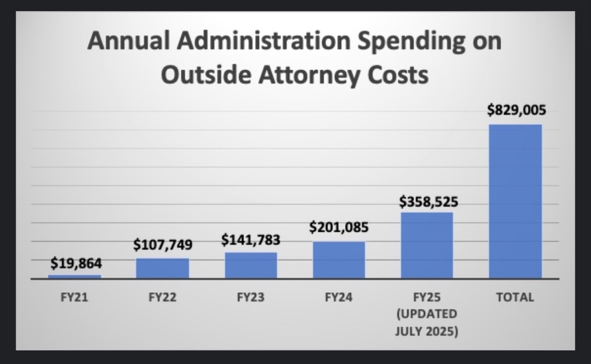 I do note that the $829K cumulative total for legal fees on the chart below far exceeds the $675K amount that is built into the FY25 budget for unspecified program and service cuts. We are dismayed to see this level of spending on legal fees when cuts should be unnecessary. At the same time, management staffing levels are being increased in the budget by 10% from the current all-time historic high of 72 managers to 79 for the 25-26 fiscal year.