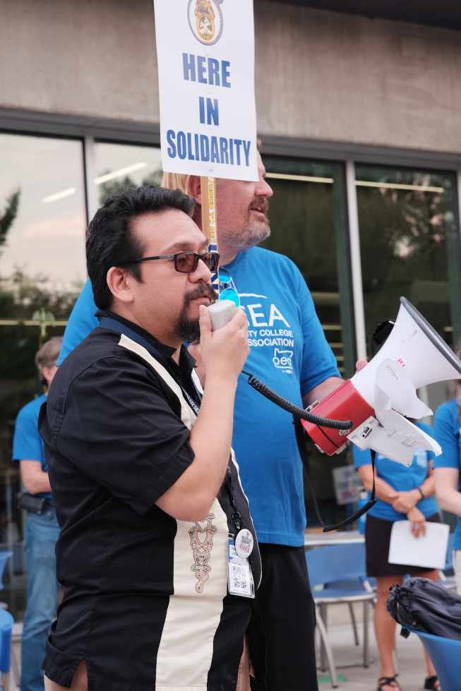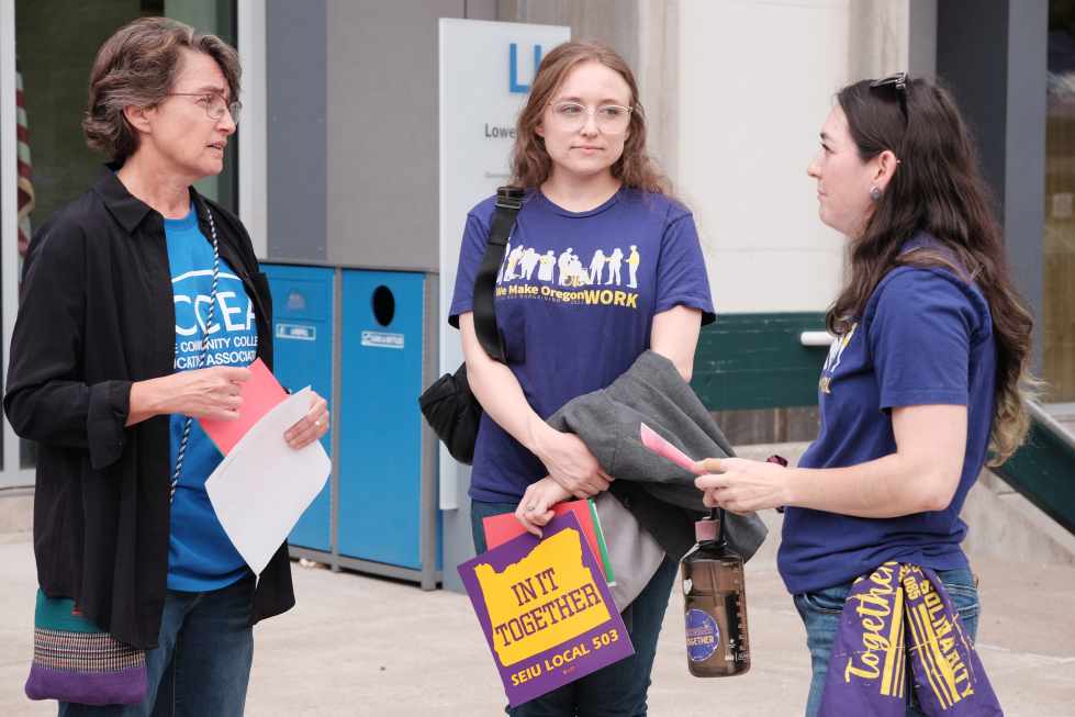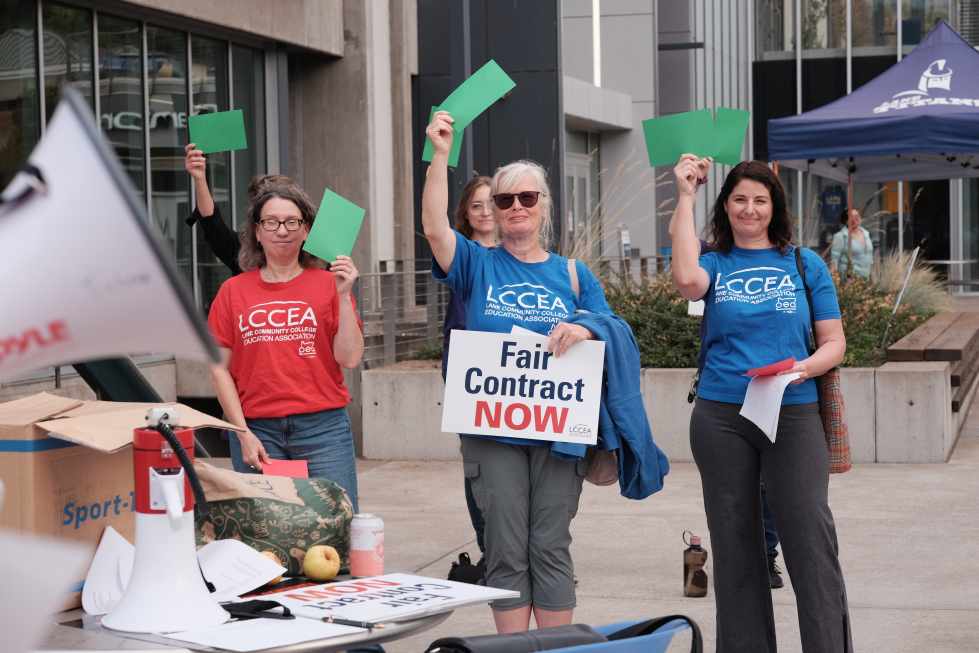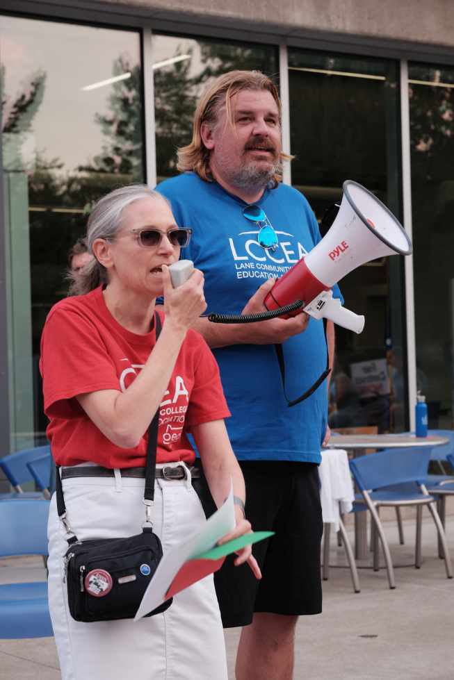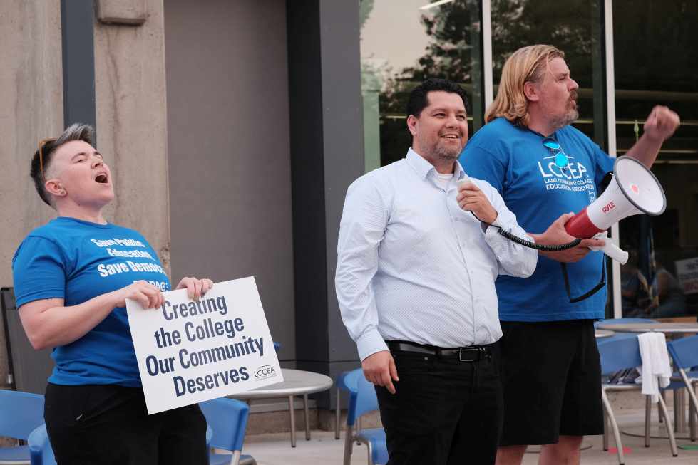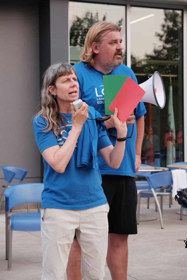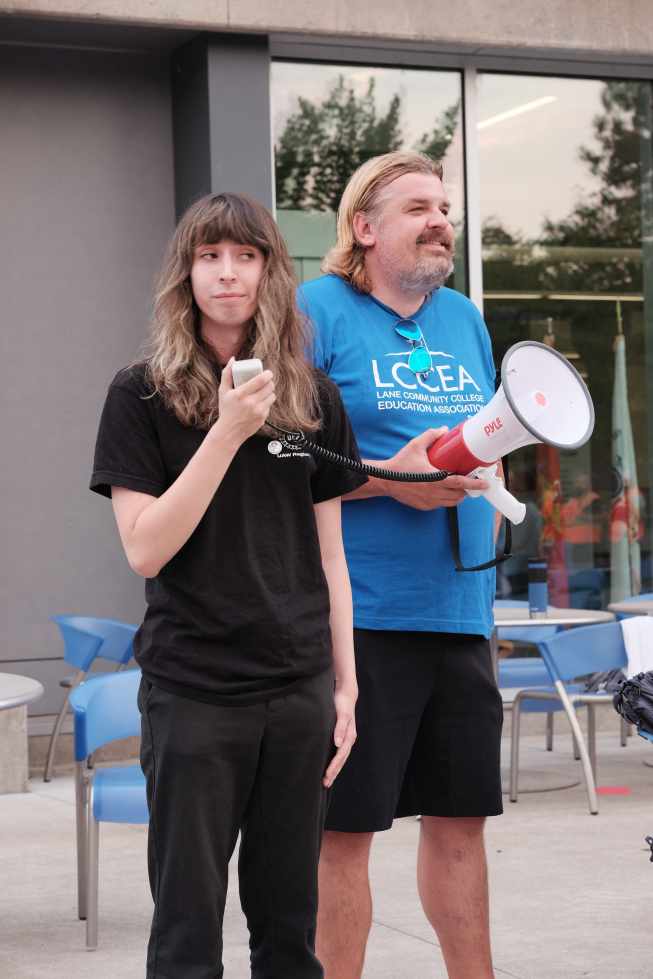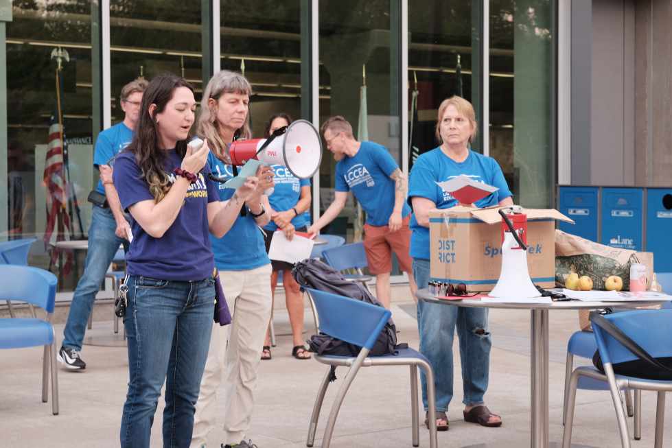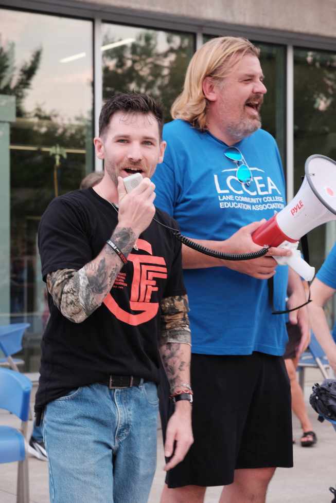LCC Students, Oregon Education Association, Teamsters Local 324, Carpenters Local 541, SEIU Local 503, UO Graduate Teaching Fellows Federation, Oregon Firefighters, Oregon Nurses Association, UO Student Workers and community members showed up at the LCCEA Rally for a Fair Contract on Wednesday before the Board Meeting. Photos: Russell Shitabata