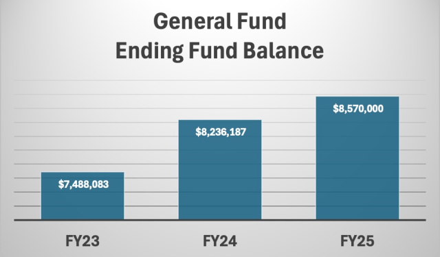 This bears out in the growing reserves of the ending fund balance. The FY23 and FY24 figures come directly from the official audit statements linked, and the FY25 estimate was provided by the administrators of the Budget and Finance offices. These data from the external auditors and the Administration confirm that there is no structural deficit because revenues exceed expenses resulting in growth of reserves.
