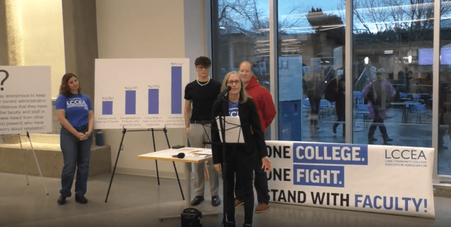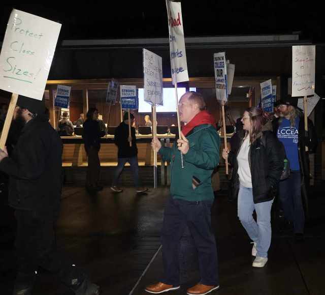 Faculty, students, and community allies turn out for informational picket, press conference at LCC on Wednesday. Fair Contract Now!